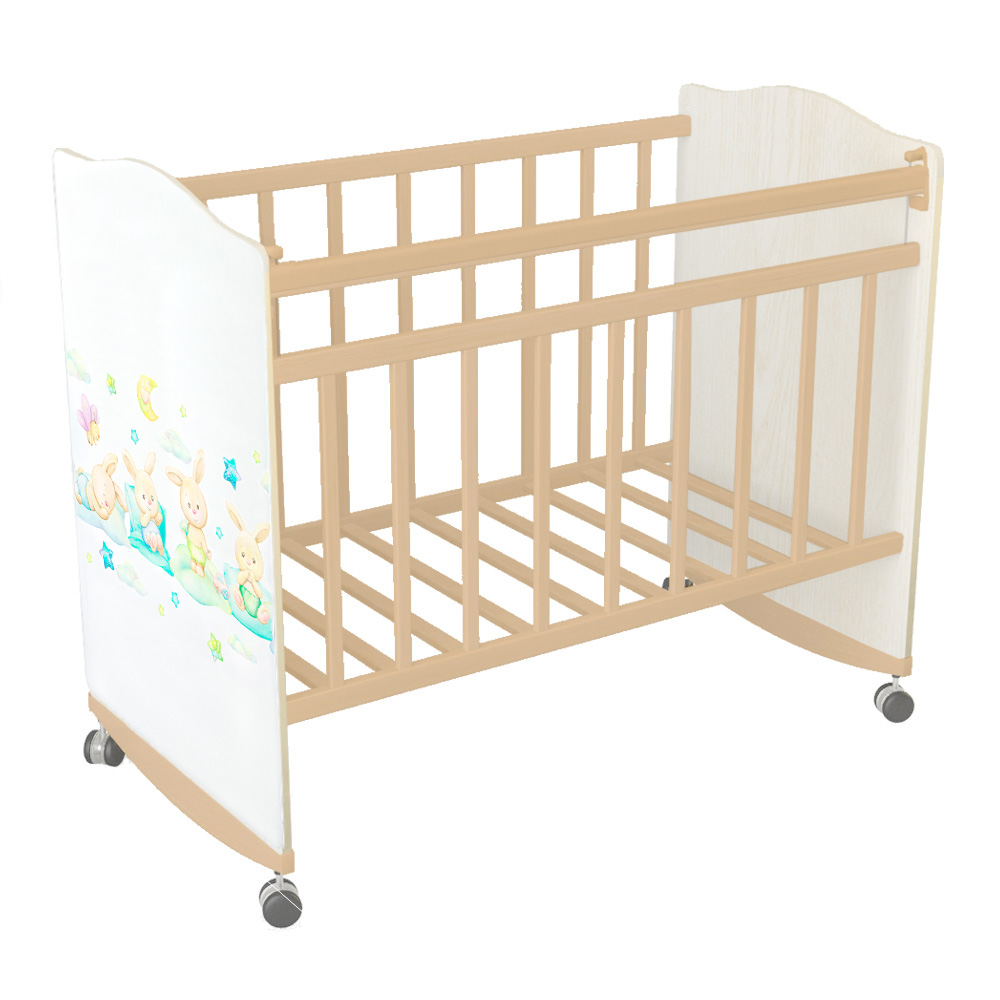 Как только ребенок подрастет, можно опустить ложе на нижний уровень и установить колеса. Кроватка уже не будет качаться, и ребенок будет в полной безопасности.