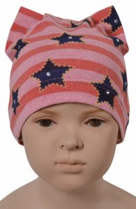 Одинарные хлопковые колпаки с декором в крупные звезды, рисунок которых не повторяется. Данная модель хорошо смотрится и на мальчиках, и на девочках. Удлиненная макушка позволяет последним носить объемные прически, не рискуя застудить уши. Практичное изделие российского производства стоит всего 100 рублей. А с учетом акций и скидок обойдется еще дешевле!