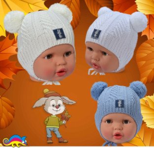 Одинароные головные уборы из высококачественной акриловой пряжи очень мягкие, теплые и удобные в использовании. Глубокая посадка, широкая резинка, переходящая в ушки с завязками, не дадут ребенку чувствовать холод и дискомфорт дождливой осенней погоды. Приятный вязаный узор и два помпона на макушке изделия очень кстати дополняют нежную однотонную пряжу. В центральной части шапочки пришита нашивка с изображением хитрого зайчика. В комплекте представлены изделия голубого, белого и бежевого цветов