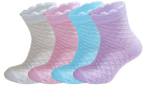 Носки летние для девочек средней длины однотонные с рисунком имитирующим ажур в виде ромбиков, борт с рюшкой "пикот".