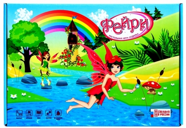 Фейри -это маленькие помощницы фей, которые живут в бутонах цветов, парят над лугами, шалят и собирают волшебные бусинки росы по утрам. Подарочная коробка 32Х22Х4 см, игровое поле 30Х41 см, стеклянные камушки, фишки, кубик. Возраст 5-99 лет. Очень увлекательно что-то искать и собирать. Все когда-то мечтали найти клад или сокровище. В данной игре на поле в определенных местах лежать стеклянные камни(волшебные бусинки росы). Кто пришел к финишу с максимальным количеством росинок, то и является победителем.