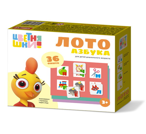 Лото дорожное «Цветняшки. Азбука» позволит ненавязчиво знакомить малыша с буквами и узнать знакомые образы героев мультфильма.