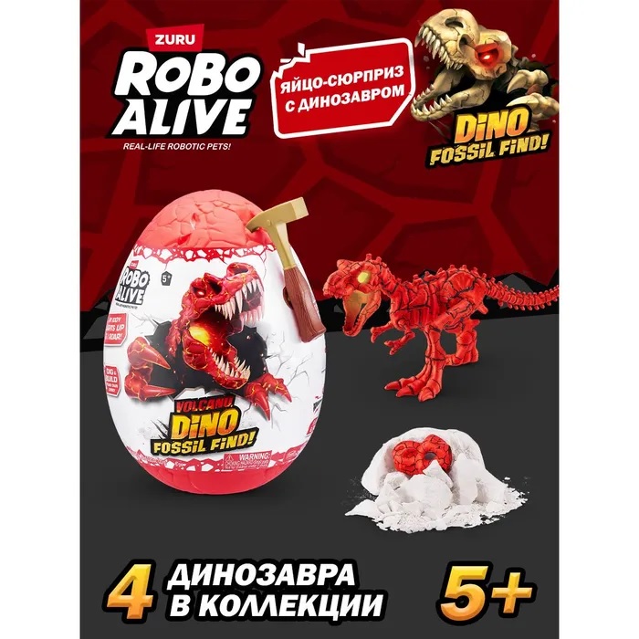 Закаляйтесь вместе с игровым набором Robo Alive Volcano Dino Fossil Find. Это идеальный подарок для мальчиков, любящих науку. Почувствуйте себя настоящим археологом: копайтесь в вулканической породе, песке и слизи, чтобы отыскать окаменелости динозавров. Соберите все части, чтобы оживить скелет с помощью света и звуков! Какого доисторического динозавра найдёте вы? Ти-рекса, трицератопса, анкилозавра или стегозавра?