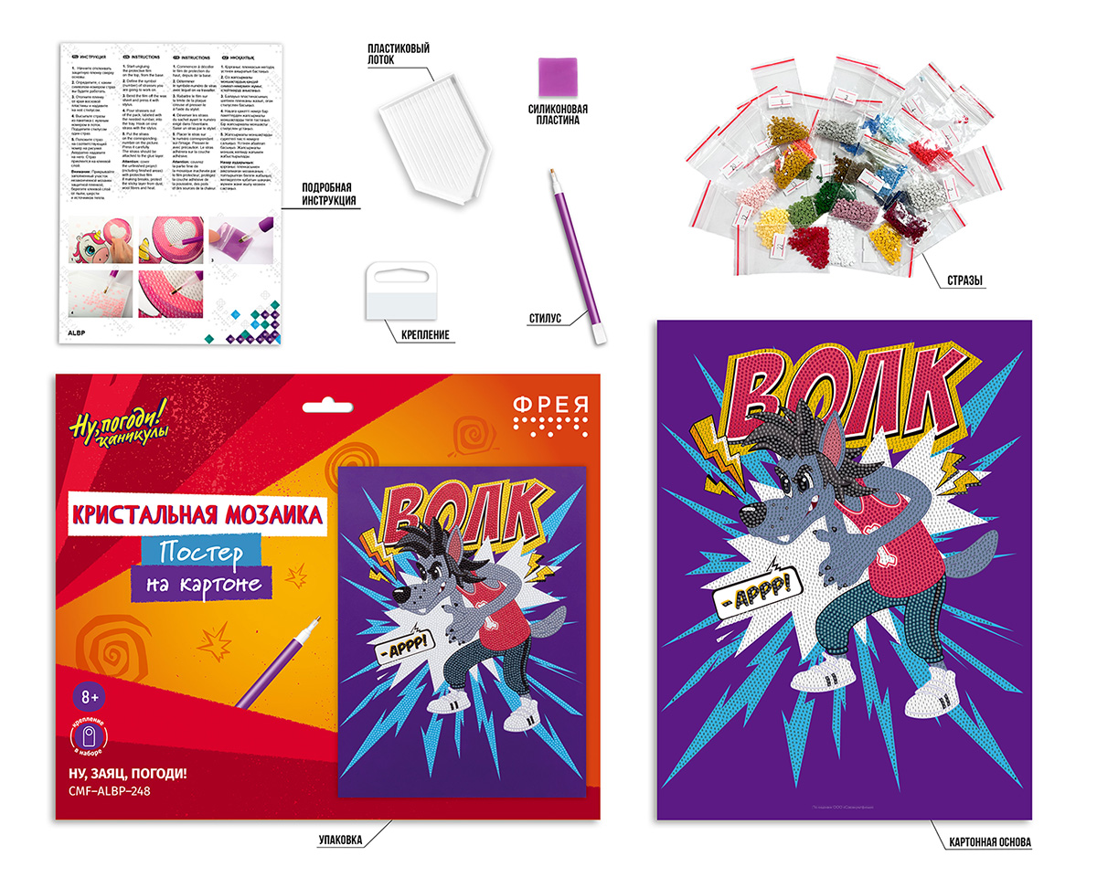 Стразы наклеиваются поверх изображения со схемой на уже нанесенный клеевой слой. Основа из плотного картона не деформируется и не образует заломов.
