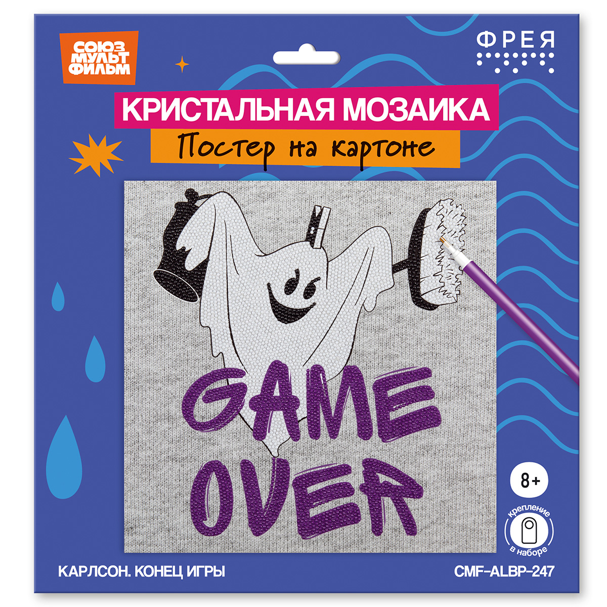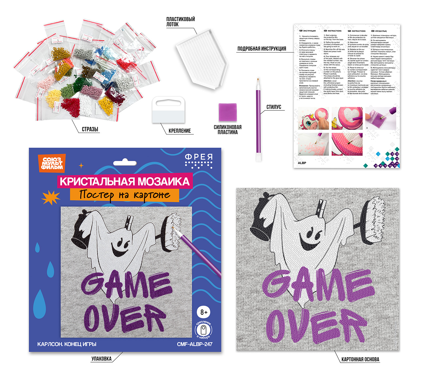 Стразы наклеиваются поверх изображения со схемой на уже нанесенный клеевой слой. Основа из плотного картона не деформируется и не образует заломов.