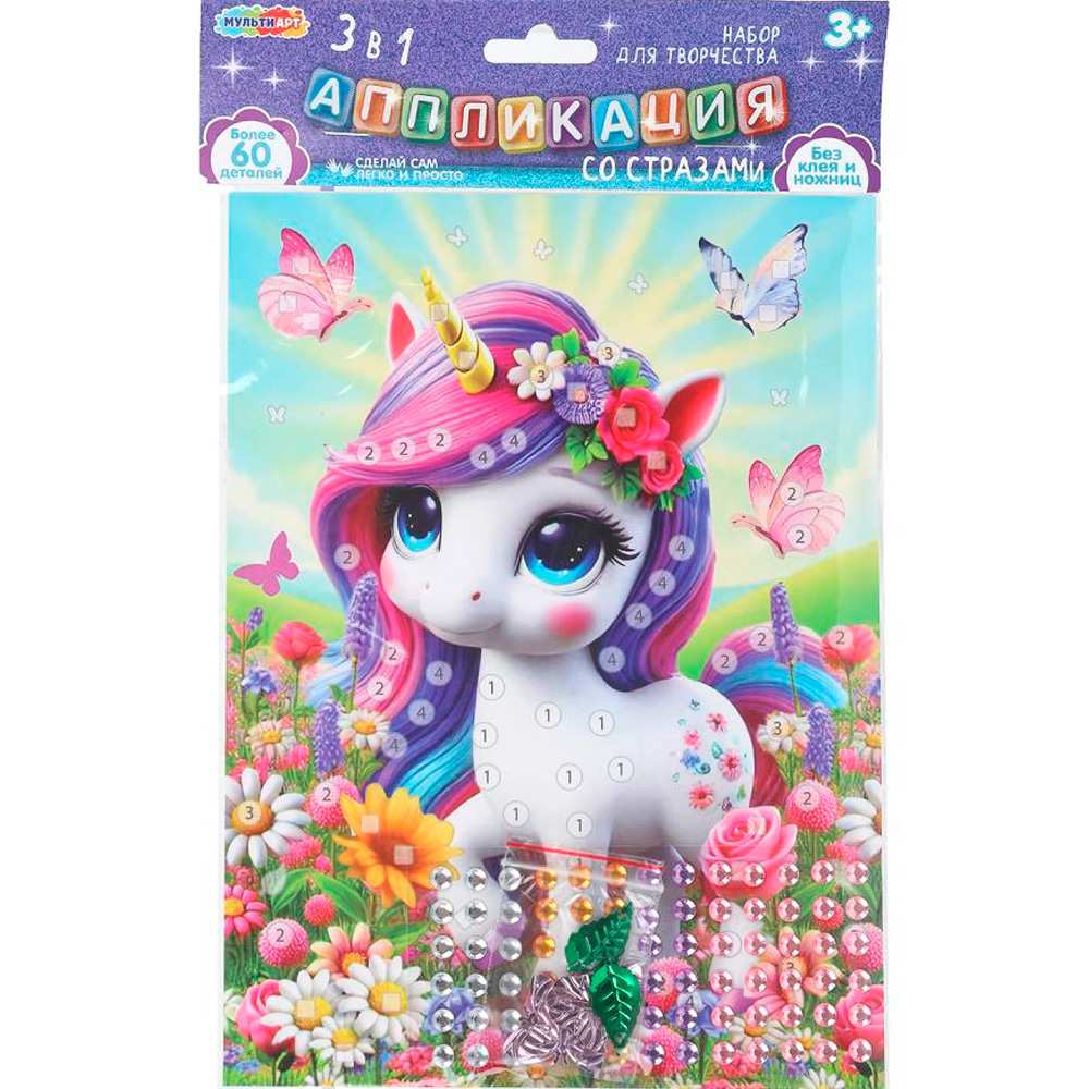 Набор для творчества — аппликация 3 в 1 из картона, ЭВА и страз «Единорог» — отличный подарок для ребёнка, который будет способствовать развитию его творческих способностей
