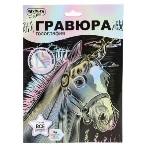 С помощью данного набора юный художник сможет создать эффектную блестящую картину на чёрном фоне. Контур рисунка уже нанесён на основу, остаётся только процарапать изображение специальным штихелем. Можно не повторять каждую черточку, главное — соблюдать направление штриха! Готовая поделка станет отличным вариантом для подарка близким или для украшения интерьера комнаты.