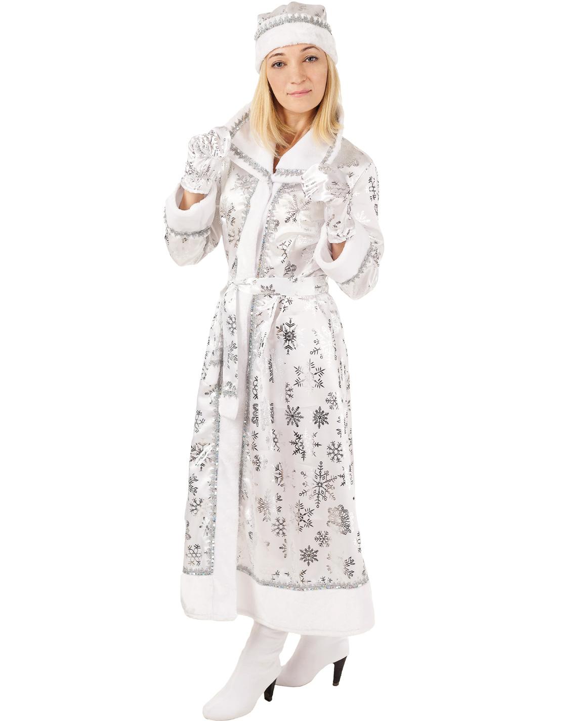 Рукава, воротник и подол декорированы белым мехом и серебристой тесьмой