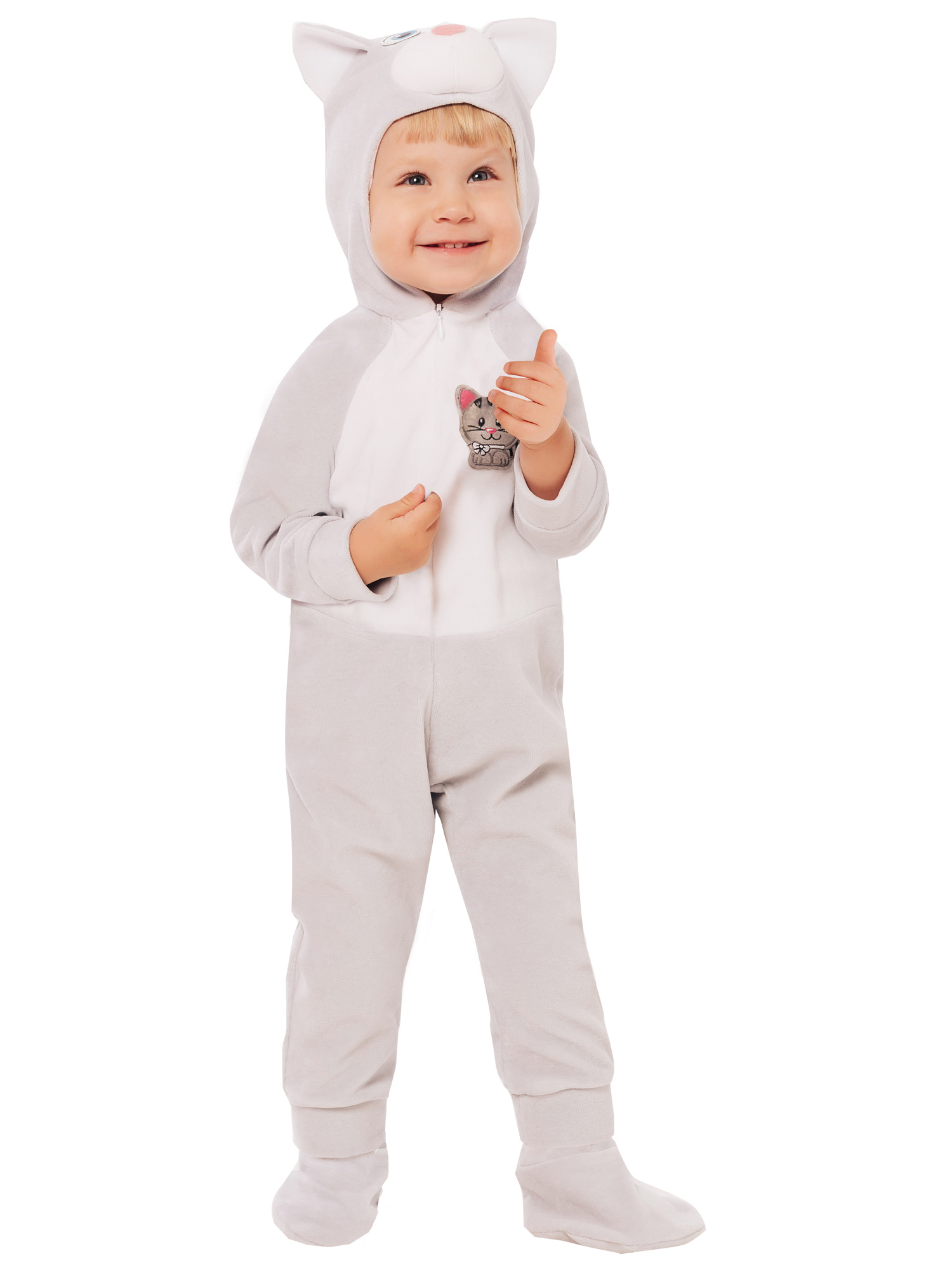 Карнавальный костюм Котик из серии "Ладушки-игрушки" для малышей до 1 года. Костюм подойдет для фотосессий и первых праздников с ребенком. Выполнен из натурального хлопка. Расцветка серая.