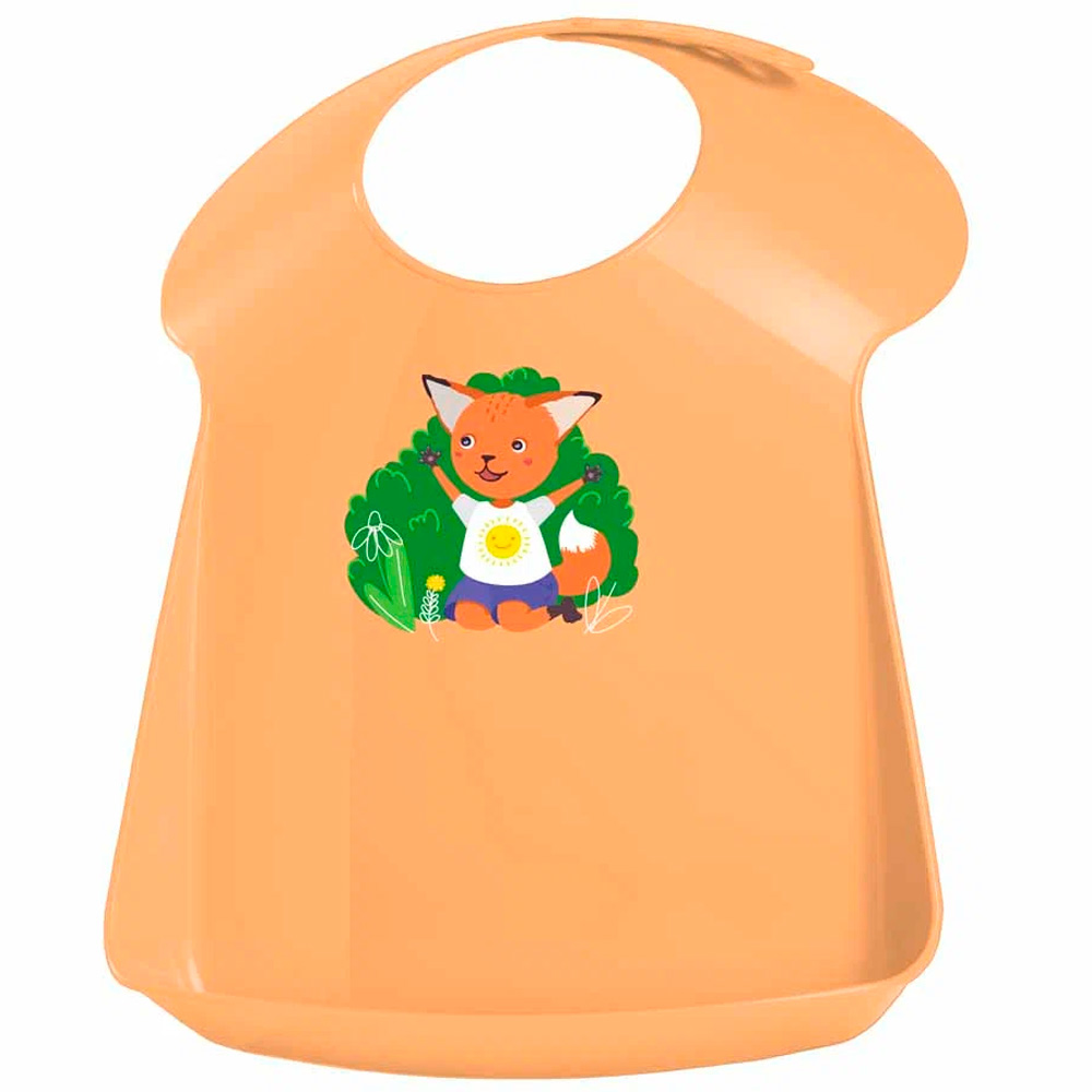 Нагрудник имеет яркий дизайн с изображением лисенка, который понравится каждому ребенку.